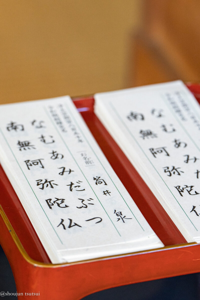 南無阿弥陀仏の六文字を書くだけの写経や短いお経など、好きなものを選んでください。